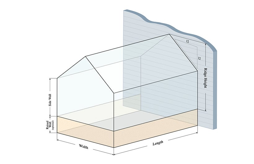The Traditional style features a straight-eave, low-slope roof designed for excellent heat retention, making it a great choice for year-round growing and cooler climates.