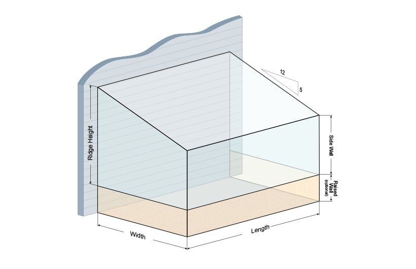 If your project calls for something more specific, custom variable slope options are also available to better match your home. See below for a sample of greenhouse prices. Any size or style available. Try our Design Your Own app for more options!