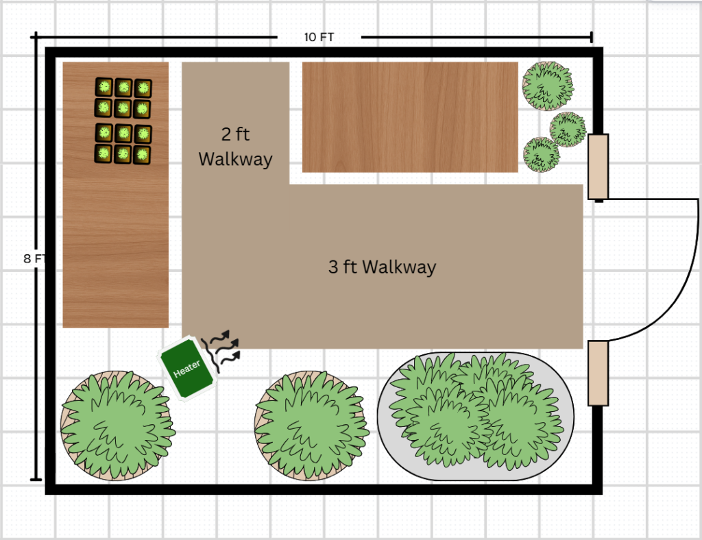 Thinking about these vertical elements early helps ensure your greenhouse layout leaves enough room for plants to grow comfortably without crowding walkways or nearby crops.